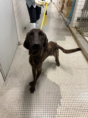 迷い犬情報 2511KD001 いいね! ページID1078216 更新日 2025年11月4日 印刷大きな文字で印刷 拡大図 横向き (Jpeg 33.2KB) 拡大図 正面 (Jpeg 57.6KB) 管理番号2511KD001 保護年月日令和7年11月4日 保護した場所下田市河内 保護状況11月1日8時半頃、下田警察署にて保護、11月4日警察経由で賀茂保健所にて保護。 掲載期間令和7年11月11日 犬種雑種 性別オス 体格大 首輪有り(赤、革製) 毛の色、長さ黒茶・短 耳の形状垂れ耳 尾の形状長い マイクロチップ無し その他特徴 連絡先賀茂健康福祉センター 衛生薬務課 電話番号0558-24-2057