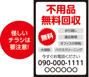 - 不審な業者(特に無料回収業者)には依頼しないようにしましょう!