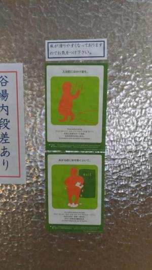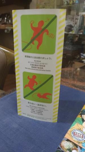 外国人のお客様の中には、温泉の入り方が分からない方がいらっしゃると思います。そのような方のために、温泉の入り方が客室には1?3枚目の写真のような物が、温泉の戸に4枚目の写真のように紙が貼られています。