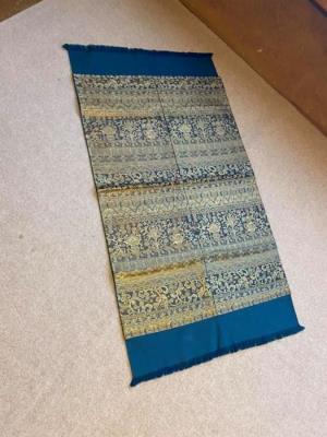 こちらの店舗では、ムスリムの方が礼拝できるよう、女将さん手作りの、着物の帯でできた「礼拝マットFUJIOBI」が用意されています。