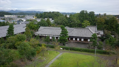 嘉永7年(1854)の大地震で倒壊後、安政2年(1855)から文久元年(1861)にかけて掛川城主太田資功によって再建された。7棟よりなる書院造で約20部屋に分かれる。現存する城郭御殿として貴重な建物である。