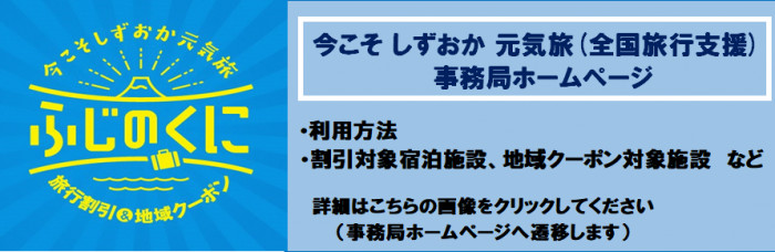 「今こそしずおか元気旅(全国旅行支援)」を1月10日から実施します!