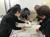 避難者の年齢、性別、国籍やそれぞれ抱える事情が書かれたカードを、避難所に見立てた平面図などに、どれだけ適切に配置できるか、また、避難所で起こる様々な出来事にどう対応していくかを模擬体験する机上訓練です。(詳細は県地震防災センターホームページをご覧ください)