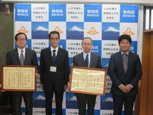 この表彰は、救急医療に10年以上の実績があり、救急医療体制の整備や普及に貢献されてきた個人及び団体を対象に行っており、今年度は、個人として、赤堀彰夫様(あかほりクリニック院長)が、団体として独立行政法人労働者健康安全機構浜松労災病院様(鈴木茂彦院長)が受賞されました。