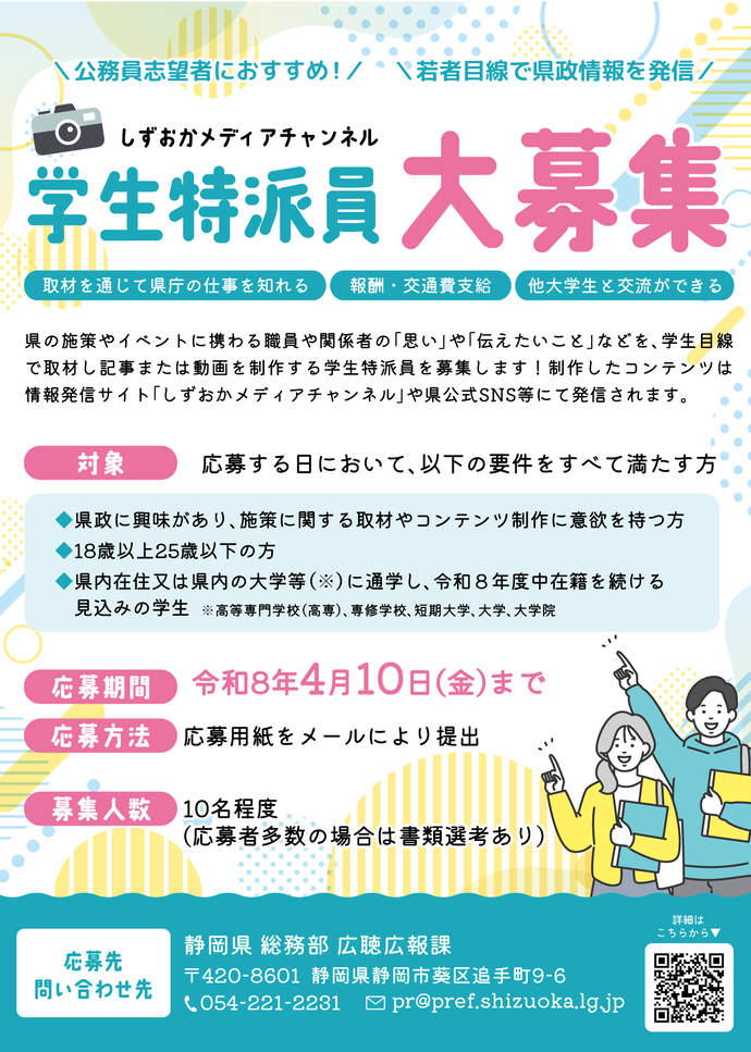 令和8年度「しずおかメディアチャンネル学生特派員」募集