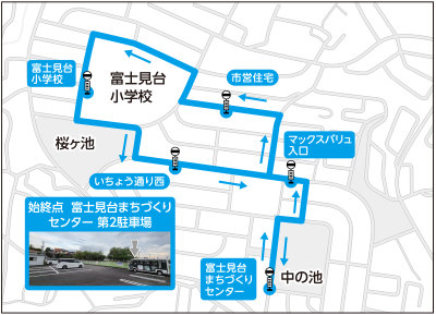 富士見台まちづくりセンターとスーパー、小学校などを経由する循環ルートです。