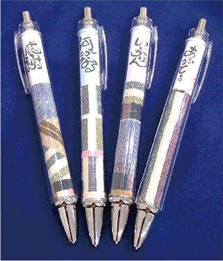 遠州綿紬のやさしい風合いをいかし、一つ一つ手作りしたボールペンとシャープペンです。工房ゆうはものづくりを通して人と社会を繋ぐ障害者施設として、日々心を込めた製品作りに取り組んでいます。伝統の布を軸に仕込み、普段使いにも贈り物にもお勧めです。
