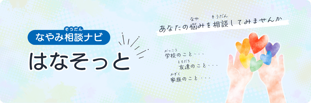 いいね! ページID1061964 更新日 2025年3月28日 印刷大きな文字で印刷 なやみ相談ナビ 【やさしいにほんごばん】なやみ相談(そうだん)ナビ ↓ すぐに相談(そうだん)したい場合(ばあい)はこちら