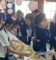 第6学校との交流では折り紙や浴衣の着付け、日本食などのワークショップを開き、日本文化を紹介しました。歌やソーラン節の披露、日本文化クイズで盛り上がりました。