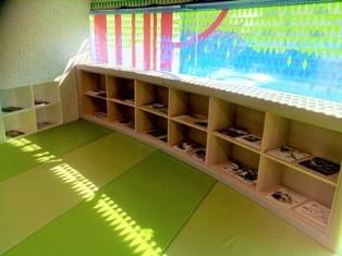 お客様には小さなお子さんを連れた方が多いことから、それに合わせた様々な設備が整えられています。館内は中央部を吹き抜けで、2階の展示エリアも壁などの区切りを極力無くし、フロア内を見渡しやすくしています。これにより開放感が生まれ、さらに保護者の方がお子さんの居場所を把握しやすくなります。