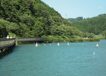 昭和32年に造られた農業用のため池で、御前崎遠州灘県立自然公園の一部となっています。四季の彩りを楽しむ散策路や散策デッキ、あずまや、展望台等も完備。毎年ラジコンヨットの全国大会も開催されます。