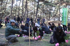 「しずおか未来の森サポーター」の協定締結を6月に行った清水銀行が平成22年12月4日(土曜日)、第1回目の活動を行いました。平成23年度の採用内定者50名が、静岡市清水区の三保松原で松くい虫に強い抵抗性クロマツの植樹を行い、名勝三保松原の保全活動に取り組みました。
