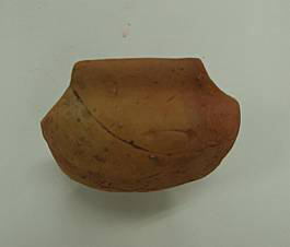 素焼(すやき)の土器で、触った感触は柔らかく色は赤っぽいです。