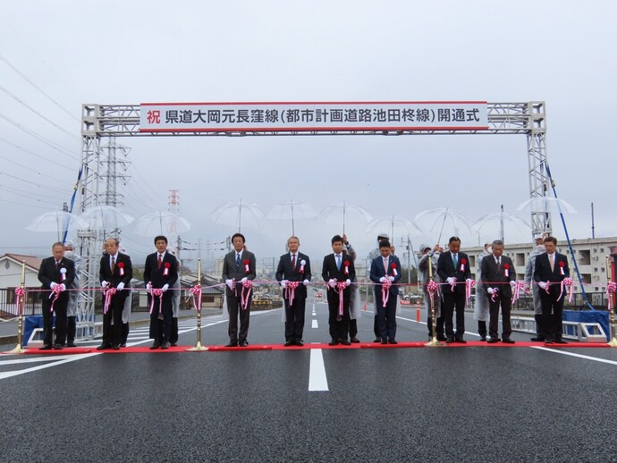 令和5年3月18日15時に県道大岡元長窪線(都市計画道路池田柊線)が開通しました。