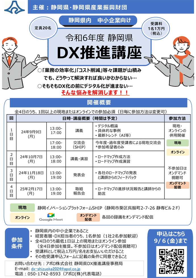 経営者層・DX担当者のうち、1名参加(1社2名参加も大歓迎です)